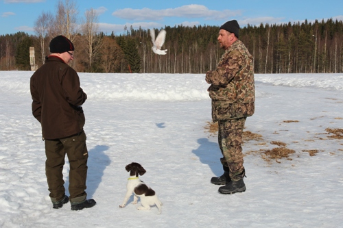 Ajankohtaista: Ollaan siirrytty kesäaikaan ja illat pitenee nyt voit varata myös ilta-aikoja. Lintutreenejä iltaisin klo n.20.00 saakka. Pentuopetuksessa keskitytään noudon, pysähtymisen ym.. perusasioiden lisäksi, toimintamalleihin lähtevällä riistalla. Sopiva ikä aloittaa n. 9-10vk Harri ja Tuisku (Nummituvan Florentiina 9vk ) seurailee kun lintu poistuu paikalta.
